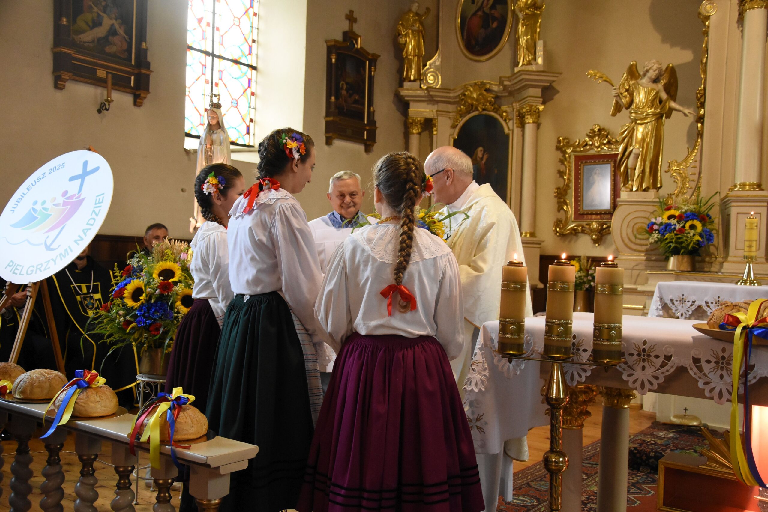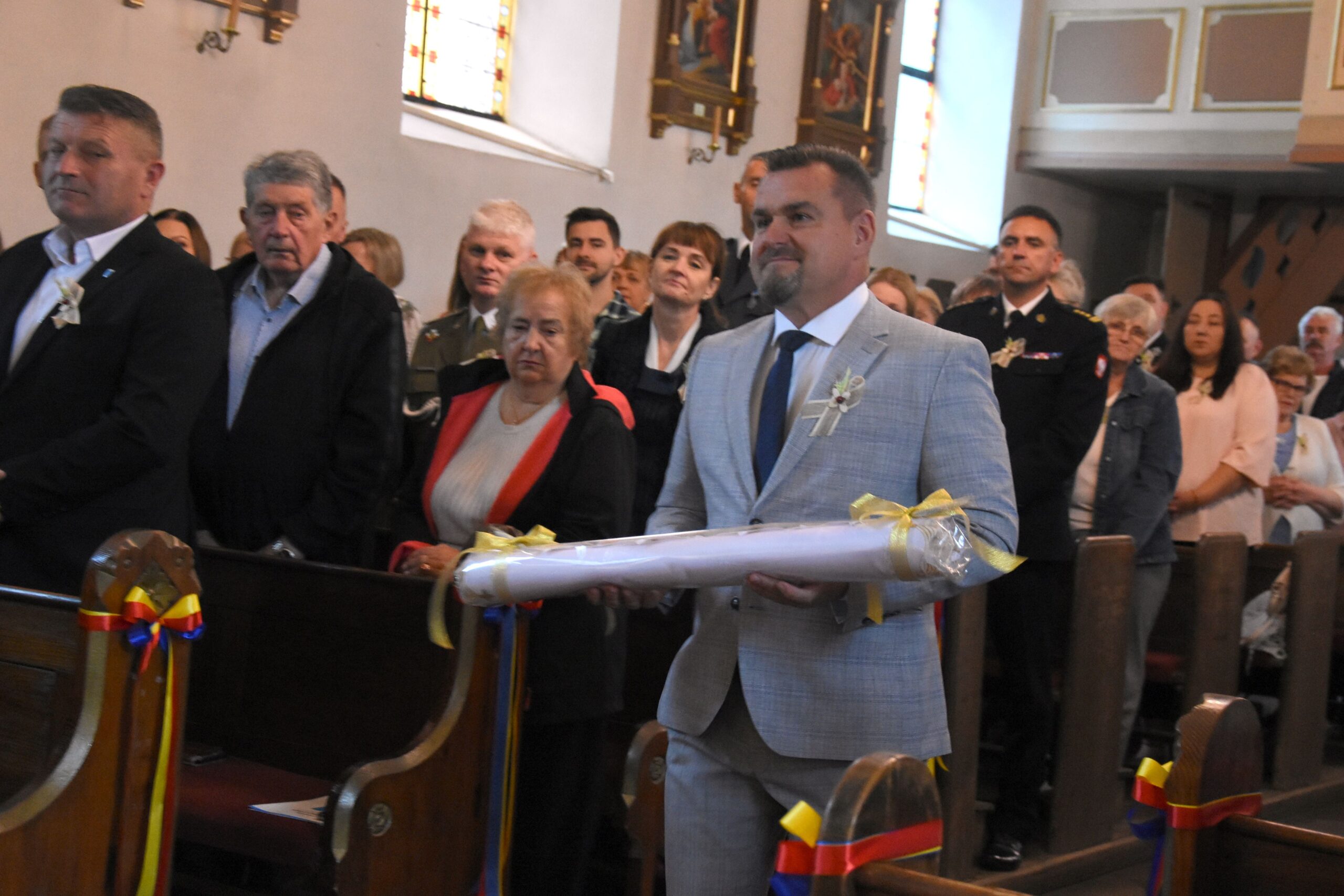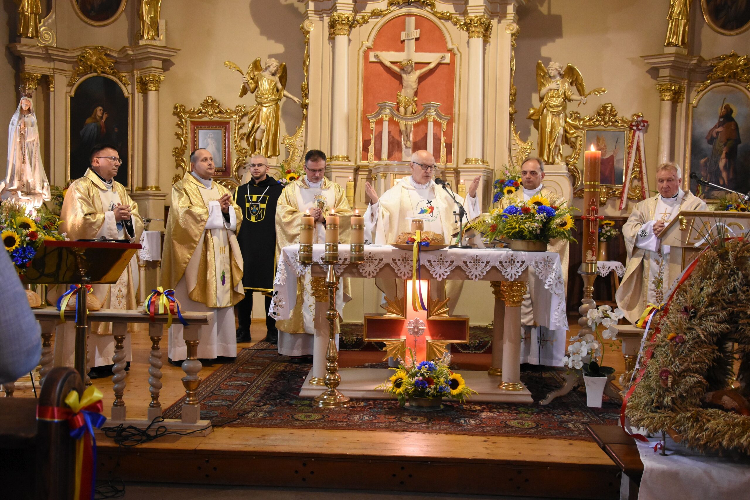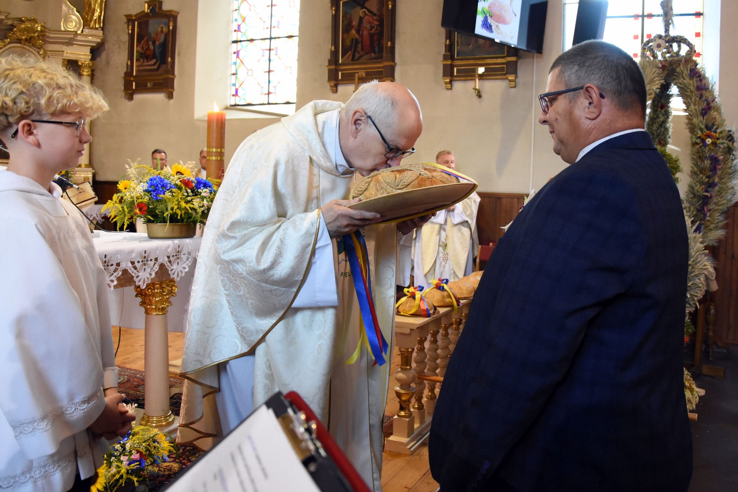 Wyrażamy wdzięczność za możliwość duchowego rozpoczęcia świętowania Dożynek Gminnych w progach kościoła parafialnego p.w. Podwyższenia Krzyża Świętego oraz obecność podczas dzisiejszego wydarzenia wszystkim Księżom, a nade wszystko, Proboszczowi Księdzu Prałatowi, Dziekanowi dekanatu lidzbarskiego Jerzemu Rożentalskiemu.