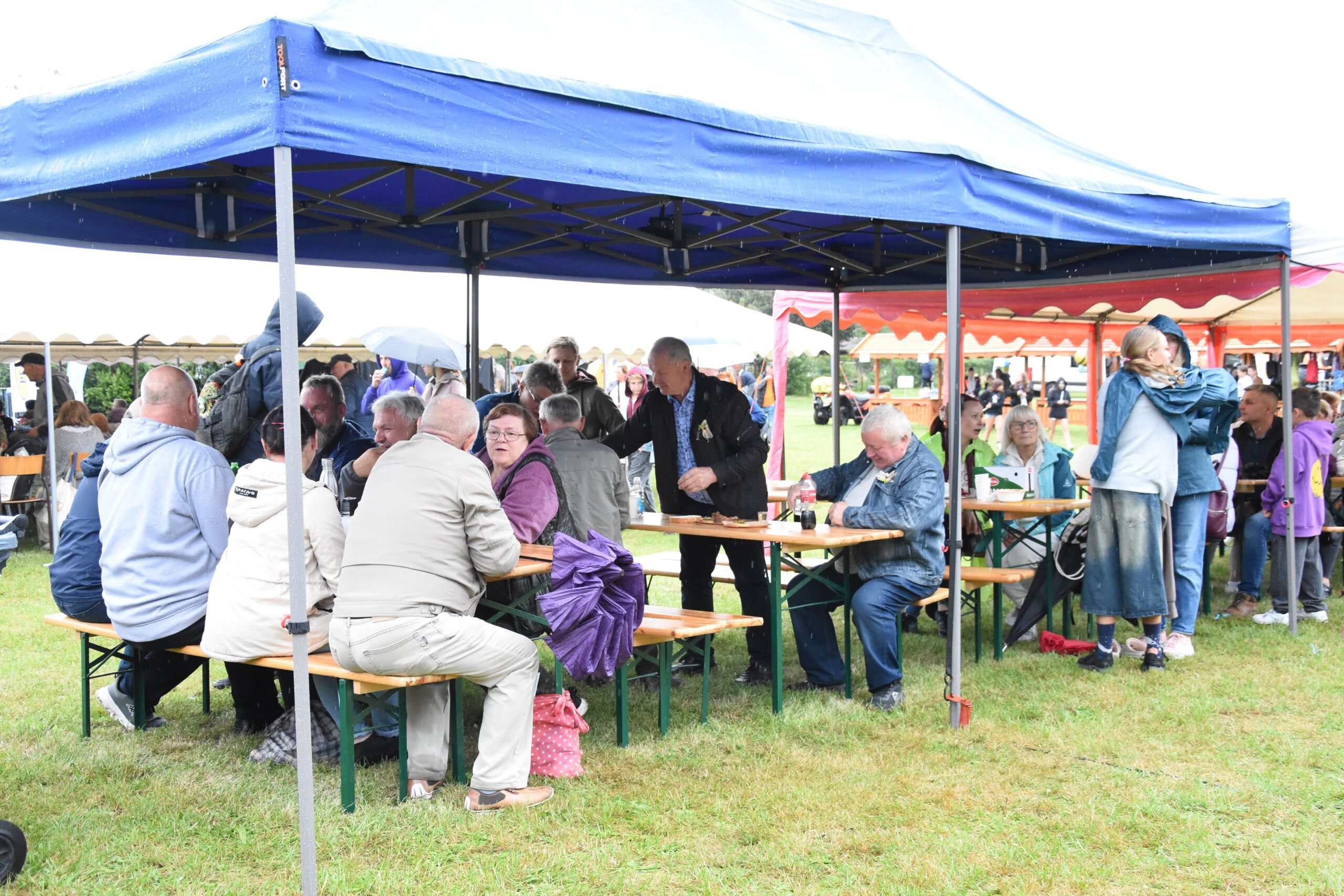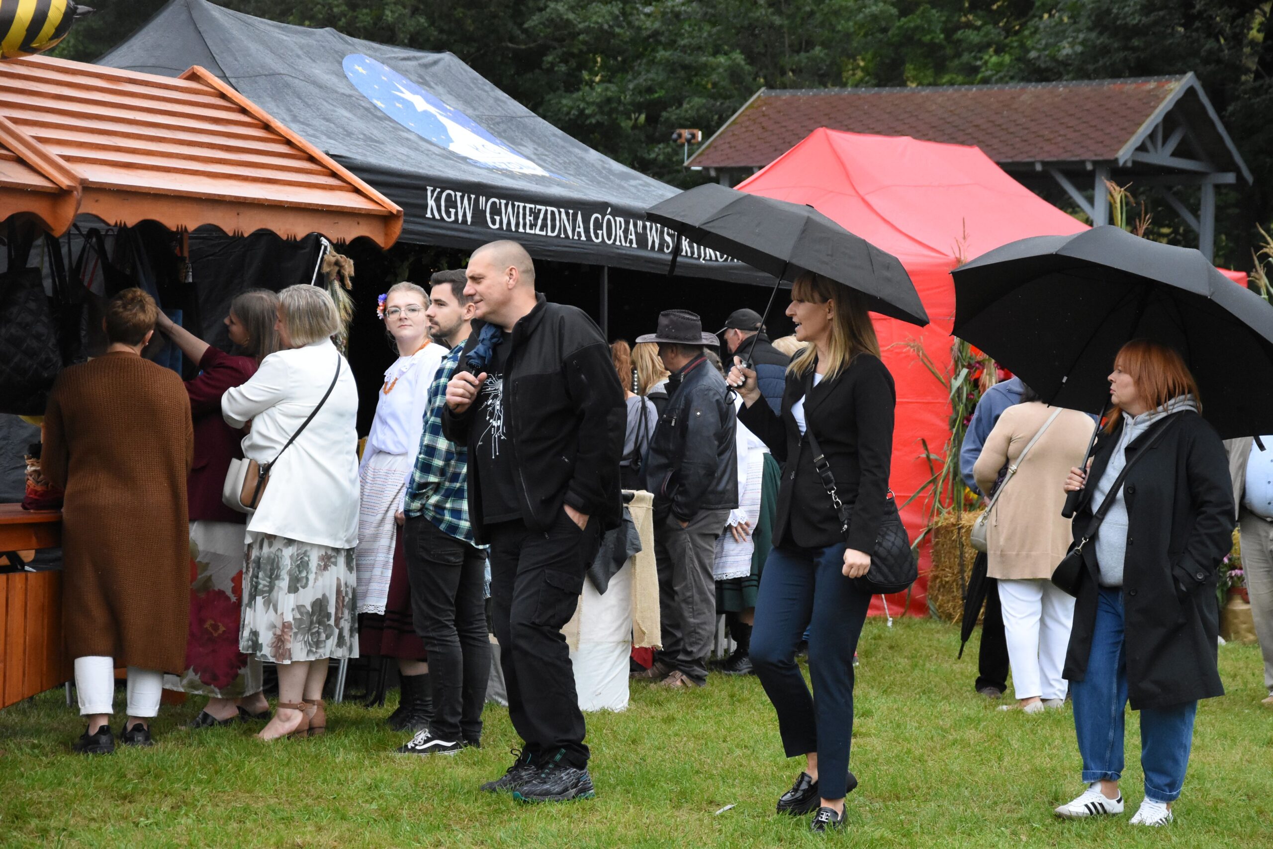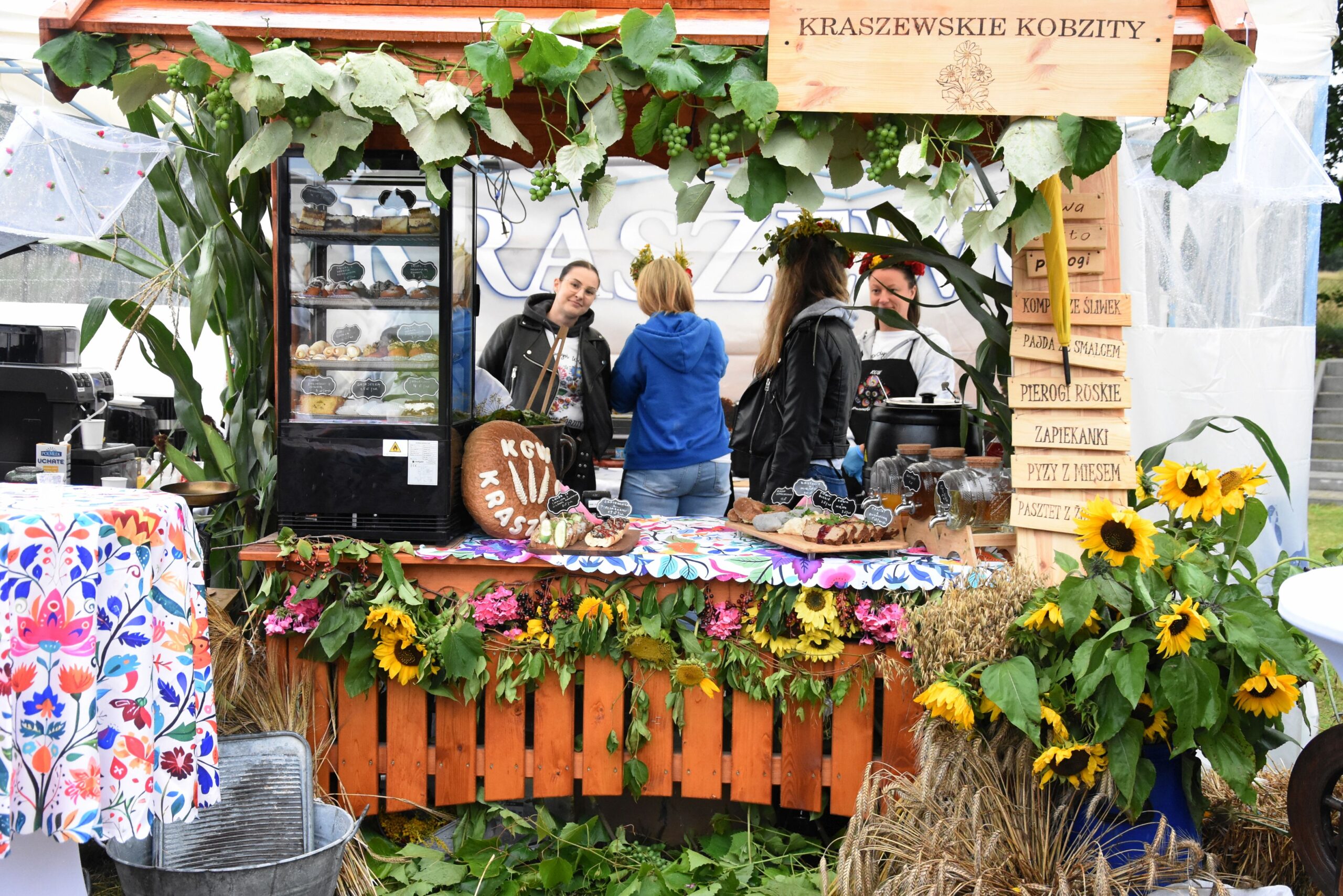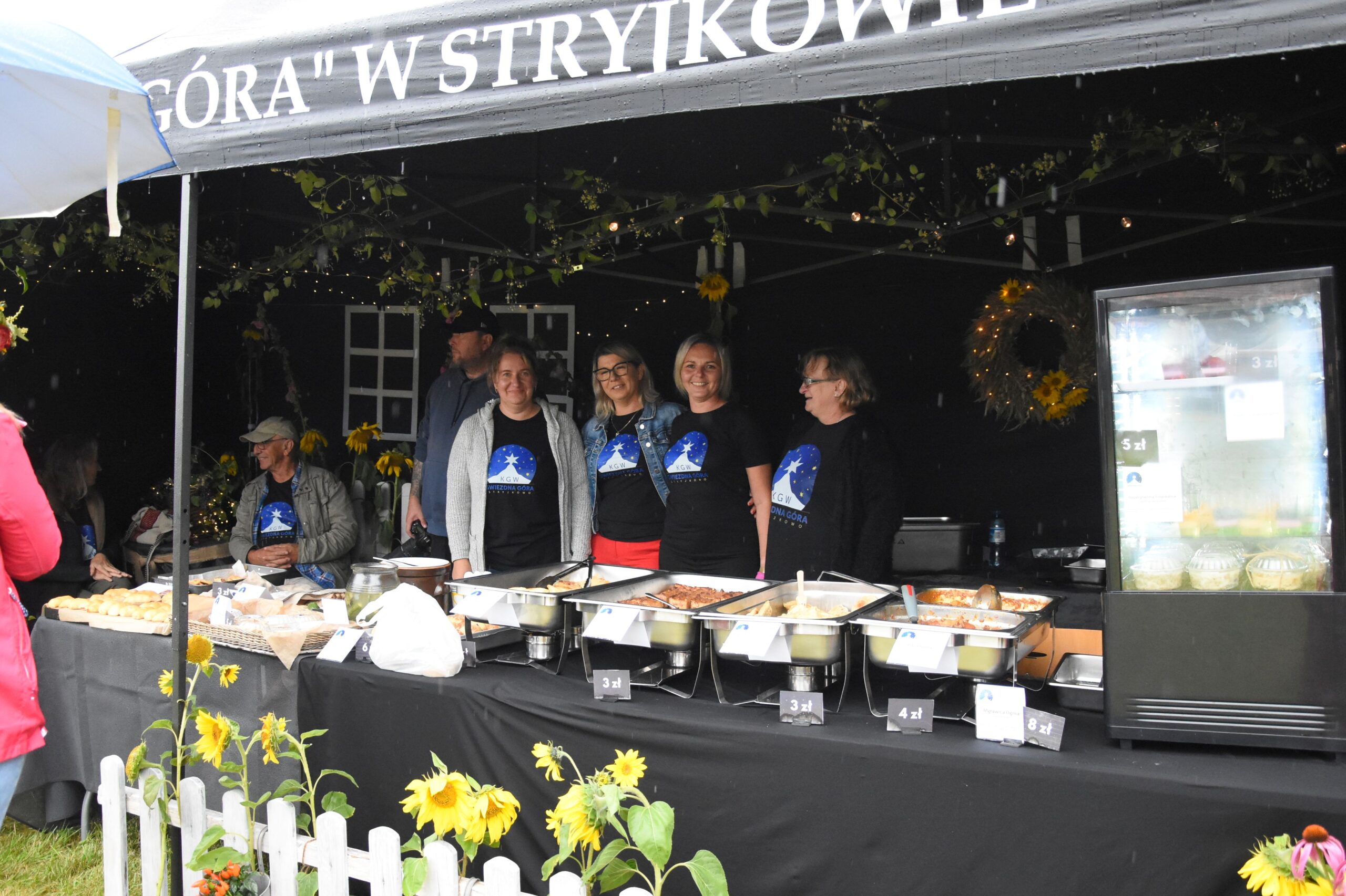 Choć deszczowa pogoda nie zachęcała do wyjścia z domu, ci którzy przyszli, mogli liczyć na prawdziwą ucztę smaków. Na barwnych stoiskach przygotowanych przez Koła Gospodyń Wiejskich, Stowarzyszenia i Sołectwa czekały regionalne specjały. Każdy mógł spróbować darmowego bigosu, grochówki, chleba ze smalcem i ogórkiem, domowych wypieków, a także skosztować produktów lokalnej firmy Polmlek.