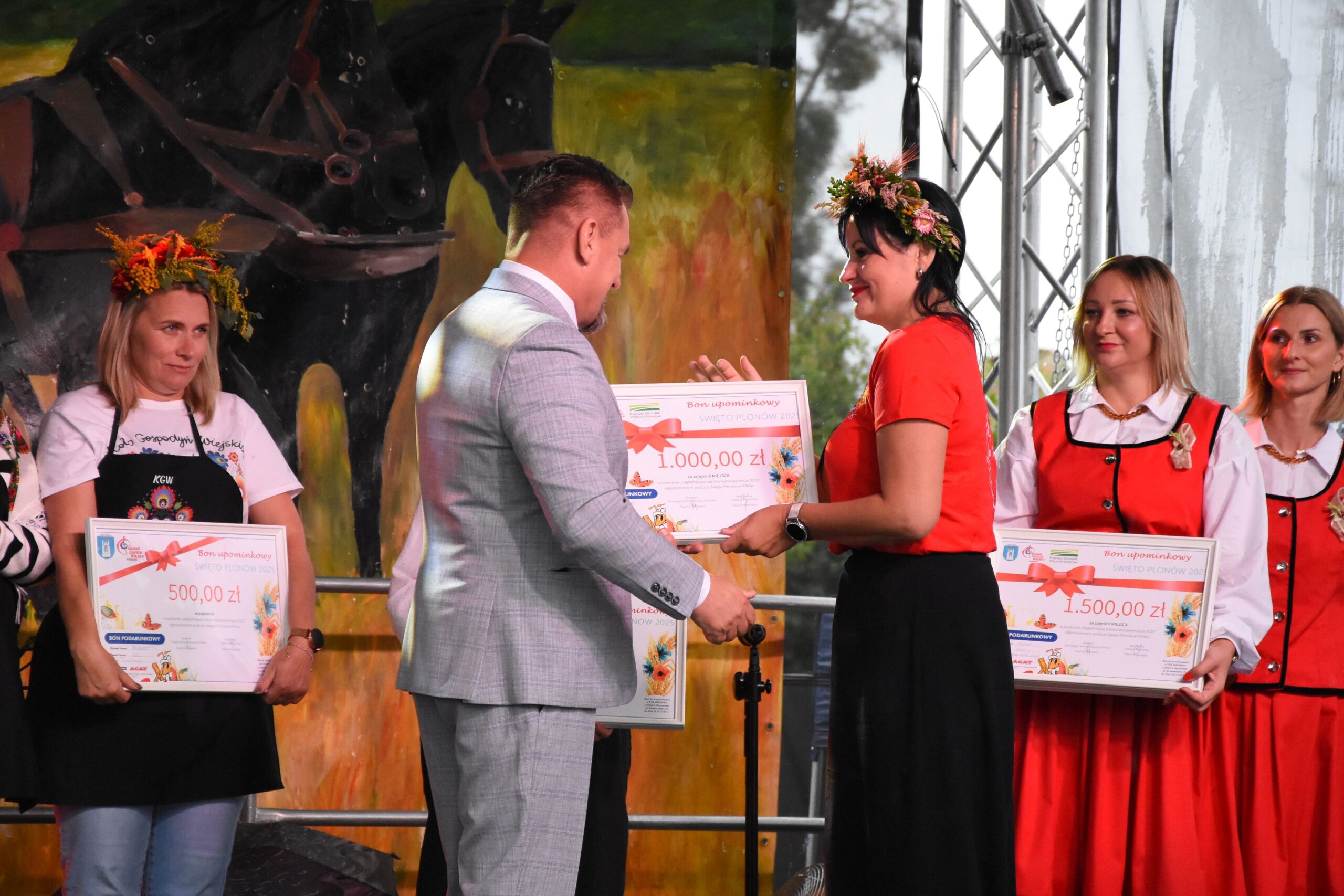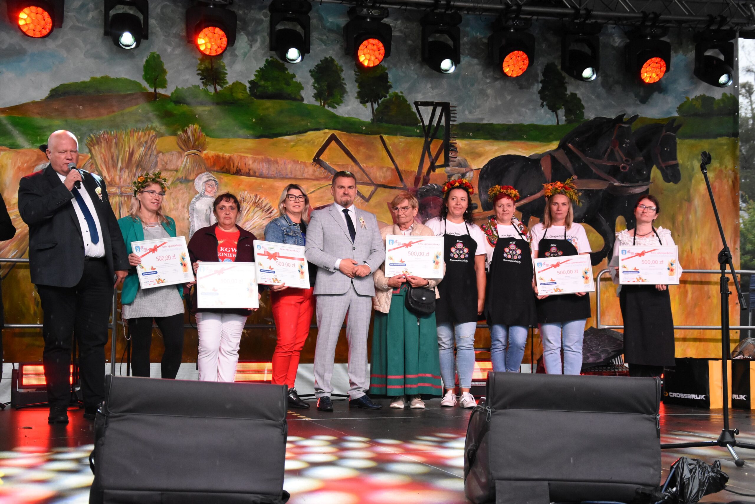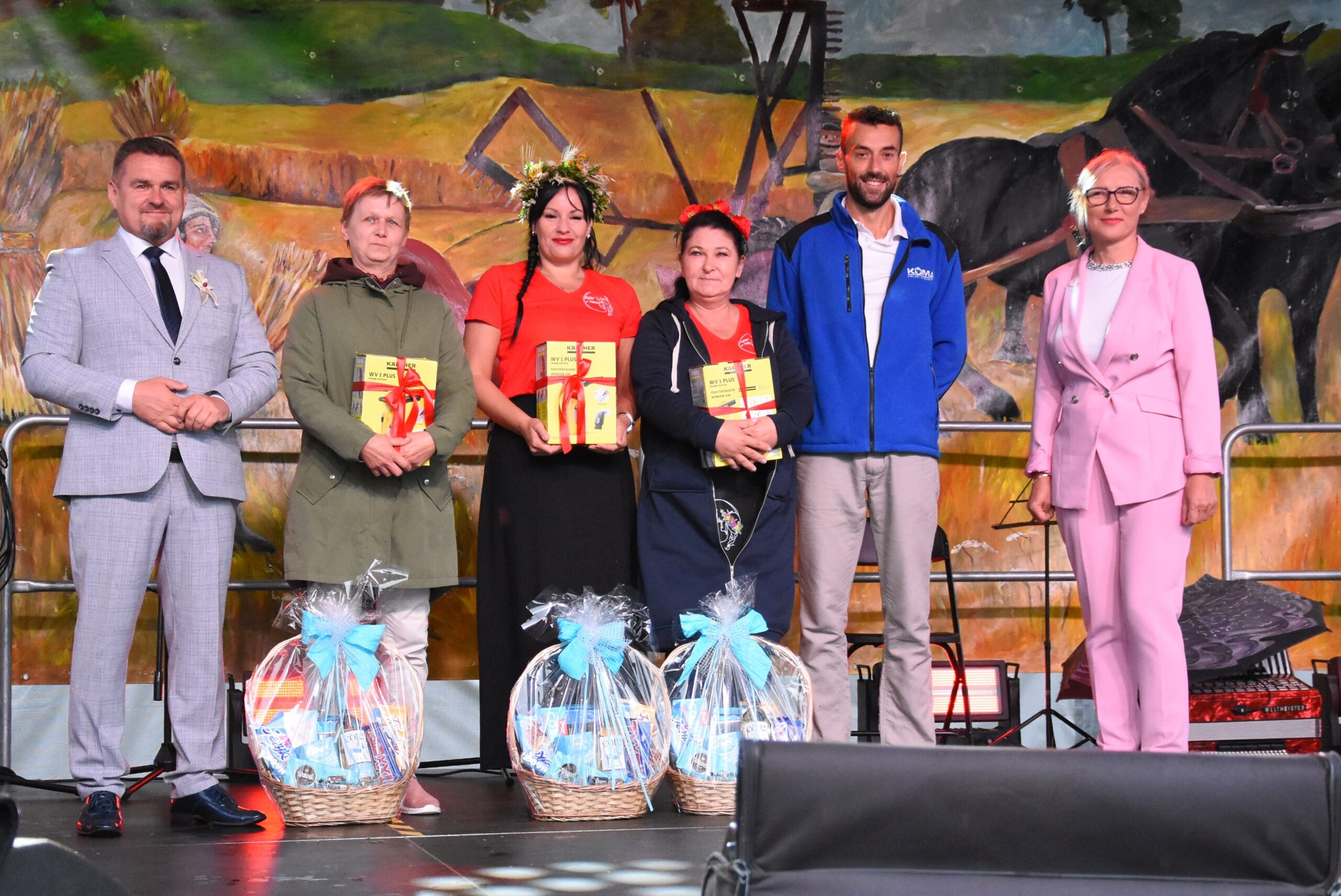 Wśród osób biorących udział w głosowaniu na „Najładniejszy wieniec dożynkowy” rozlosowano nagrody. Szczęśliwymi zwyciężczyniami zostały: Iwona Baranowska, Ewelina Wojda i Paulina Górska, które odebrały praktyczne myjki do okien firmy Karcher.