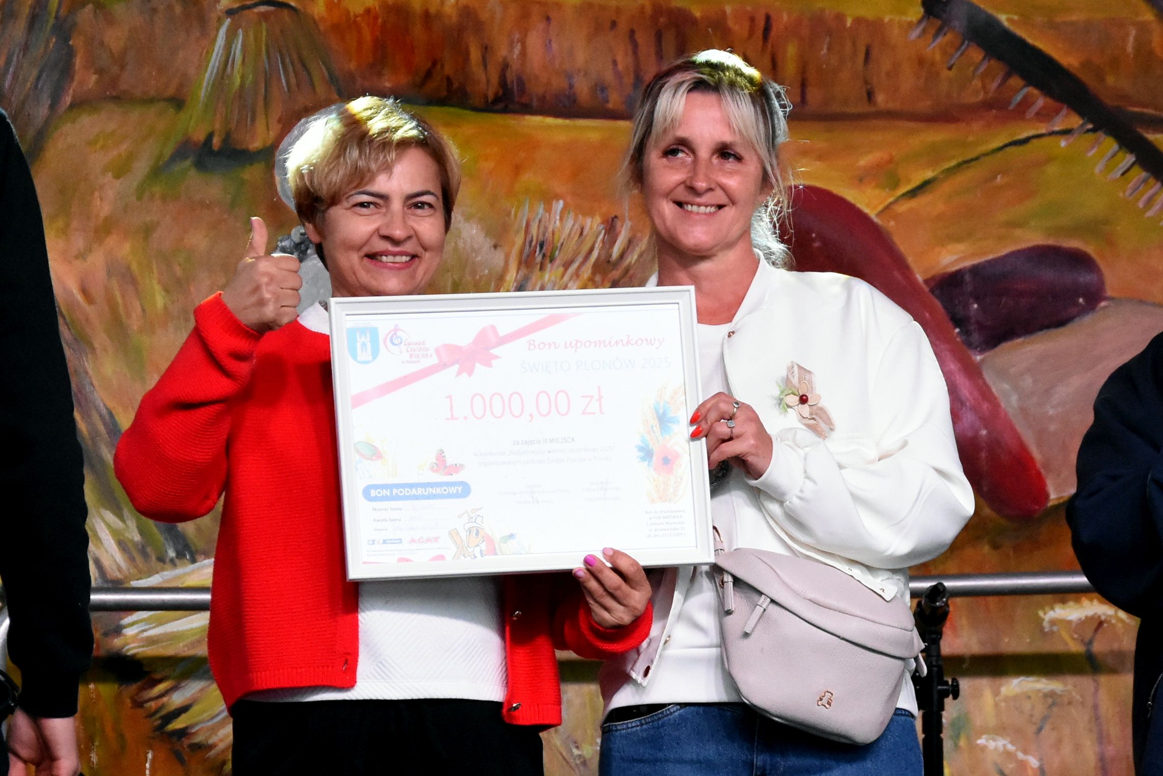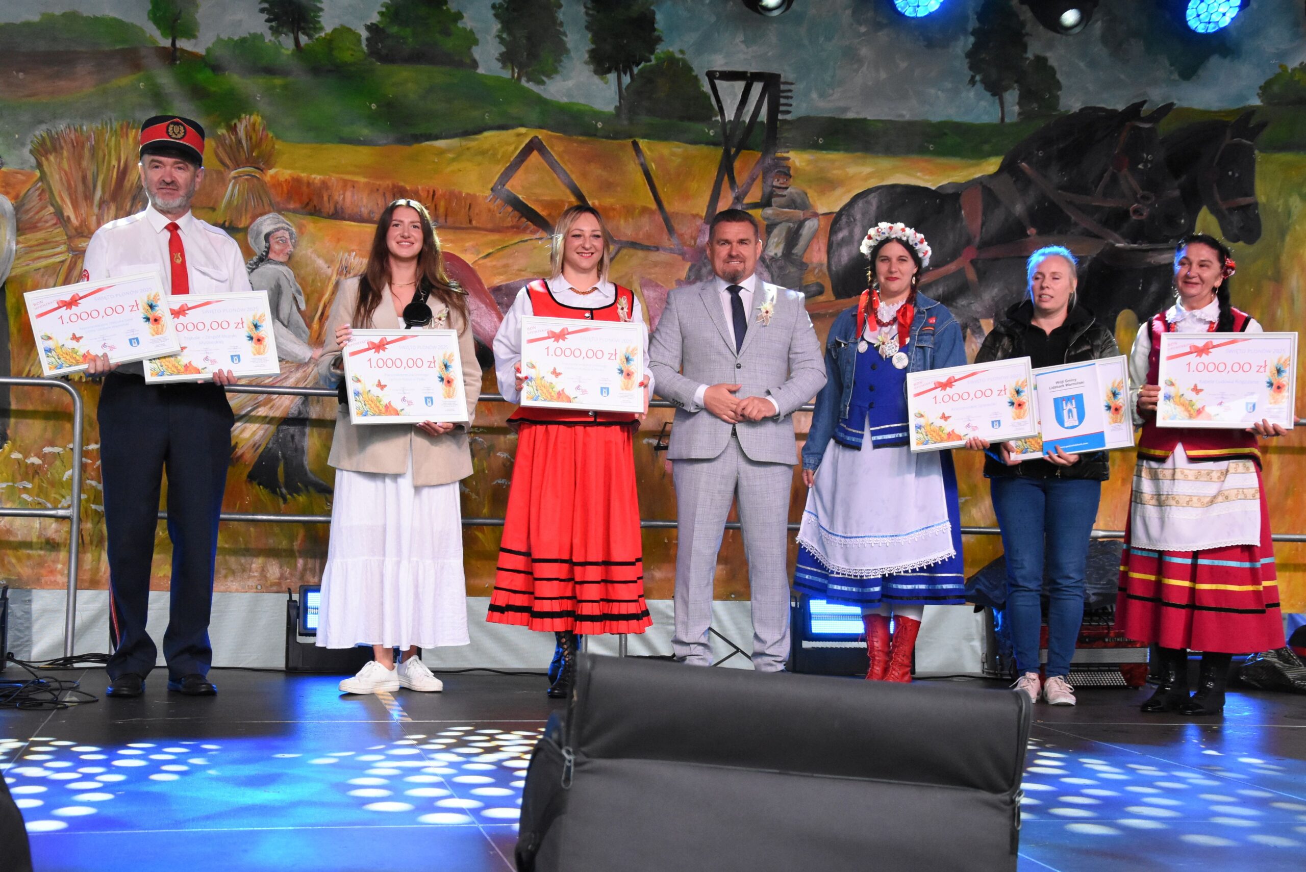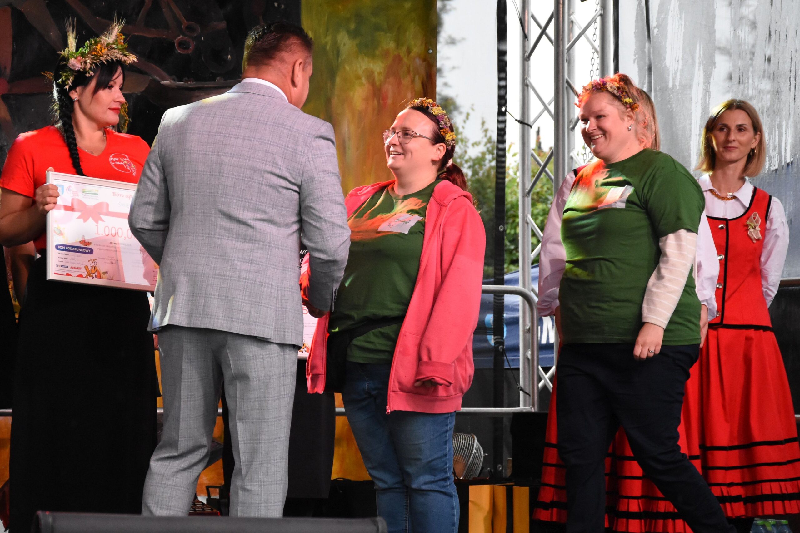 Wśród osób biorących udział w głosowaniu na „Najładniejszy wieniec dożynkowy” rozlosowano nagrody. Szczęśliwymi zwyciężczyniami zostały: Iwona Baranowska, Ewelina Wojda i Paulina Górska, które odebrały praktyczne myjki do okien firmy Karcher.